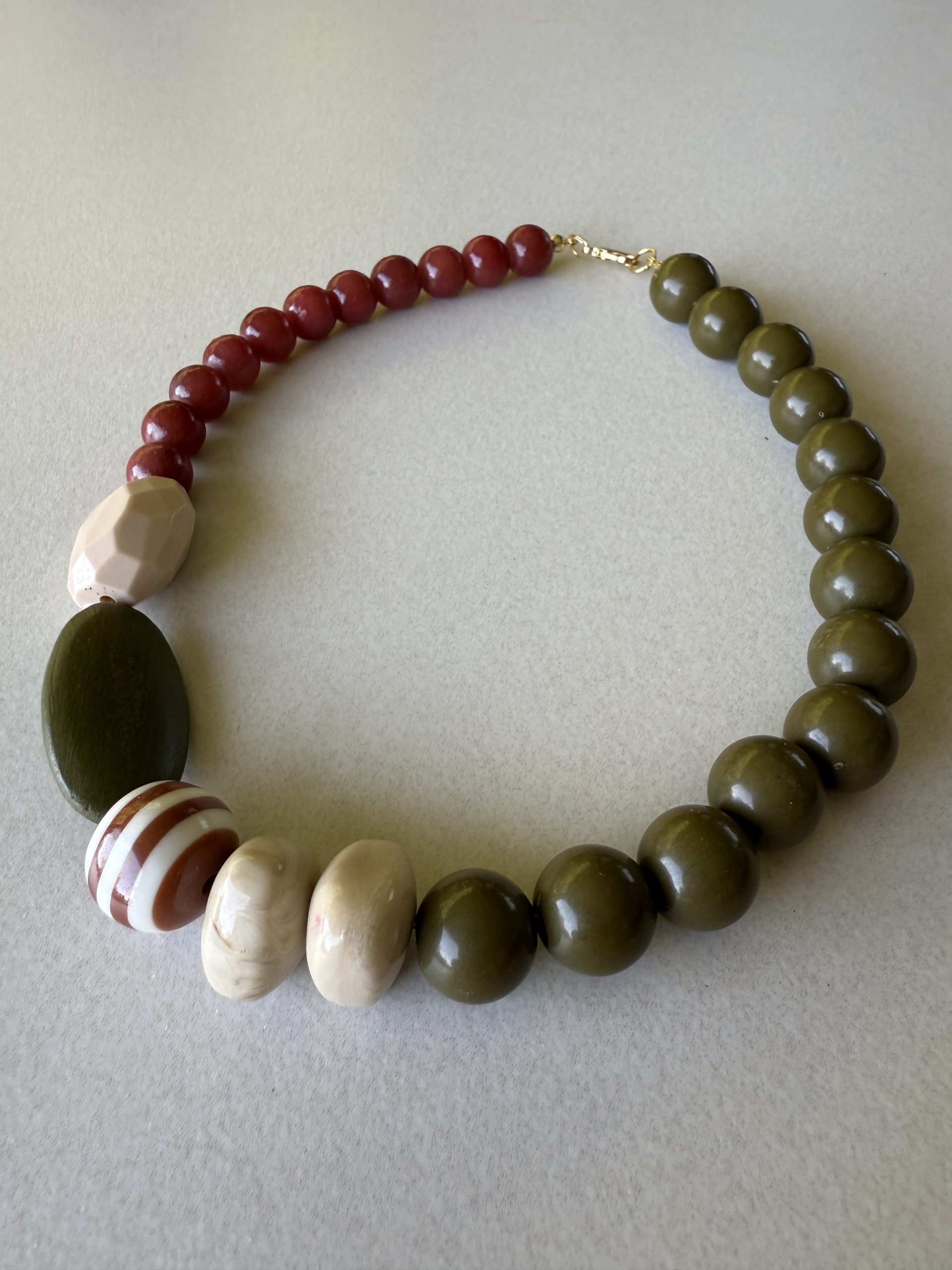 COLLAR DIVERSOS MATERIALES, MEDIDA 45 CMS. CON BROCHE INCLUIDO, TERMINACIONES EN BAÑO DE ORO.