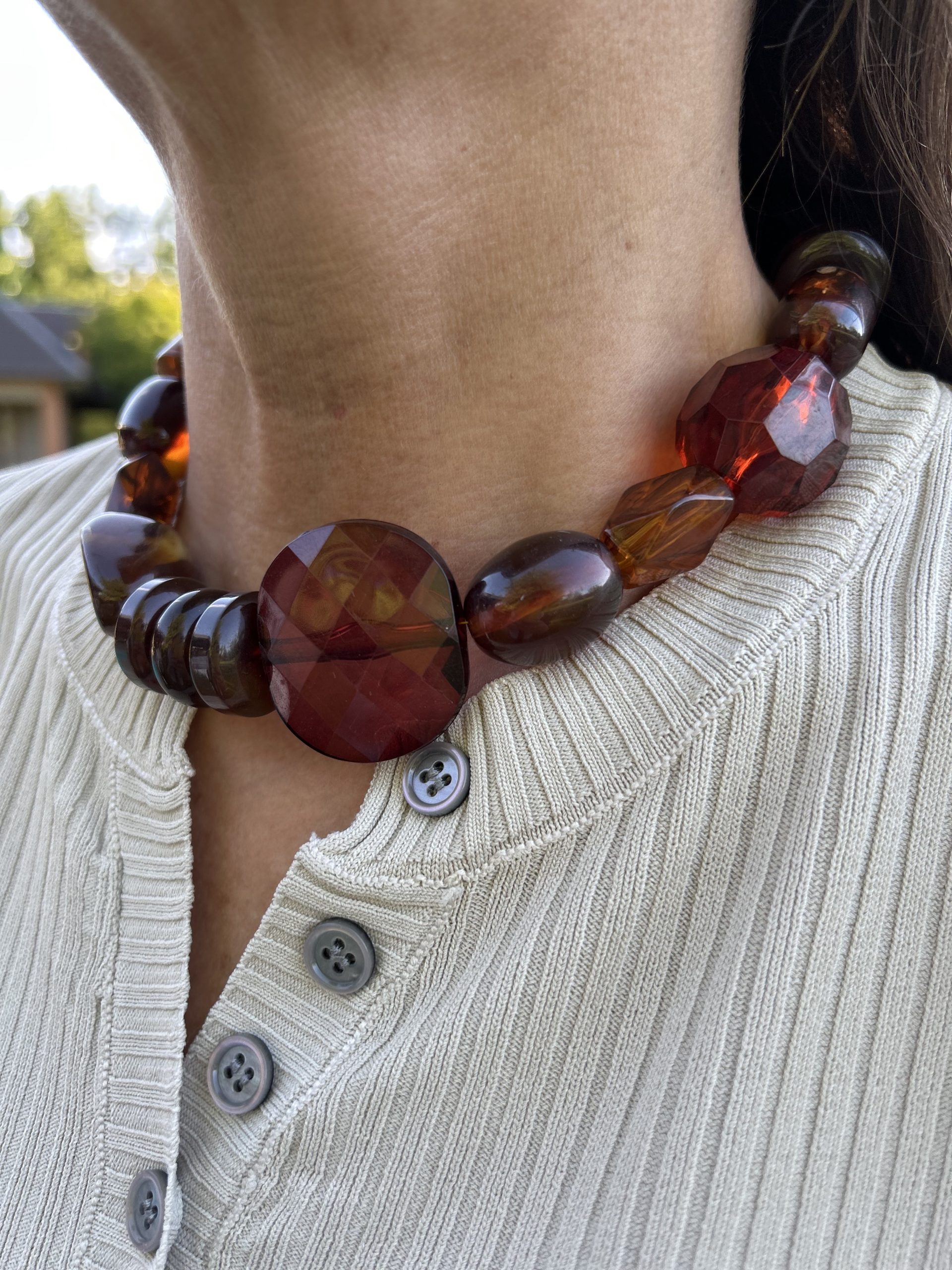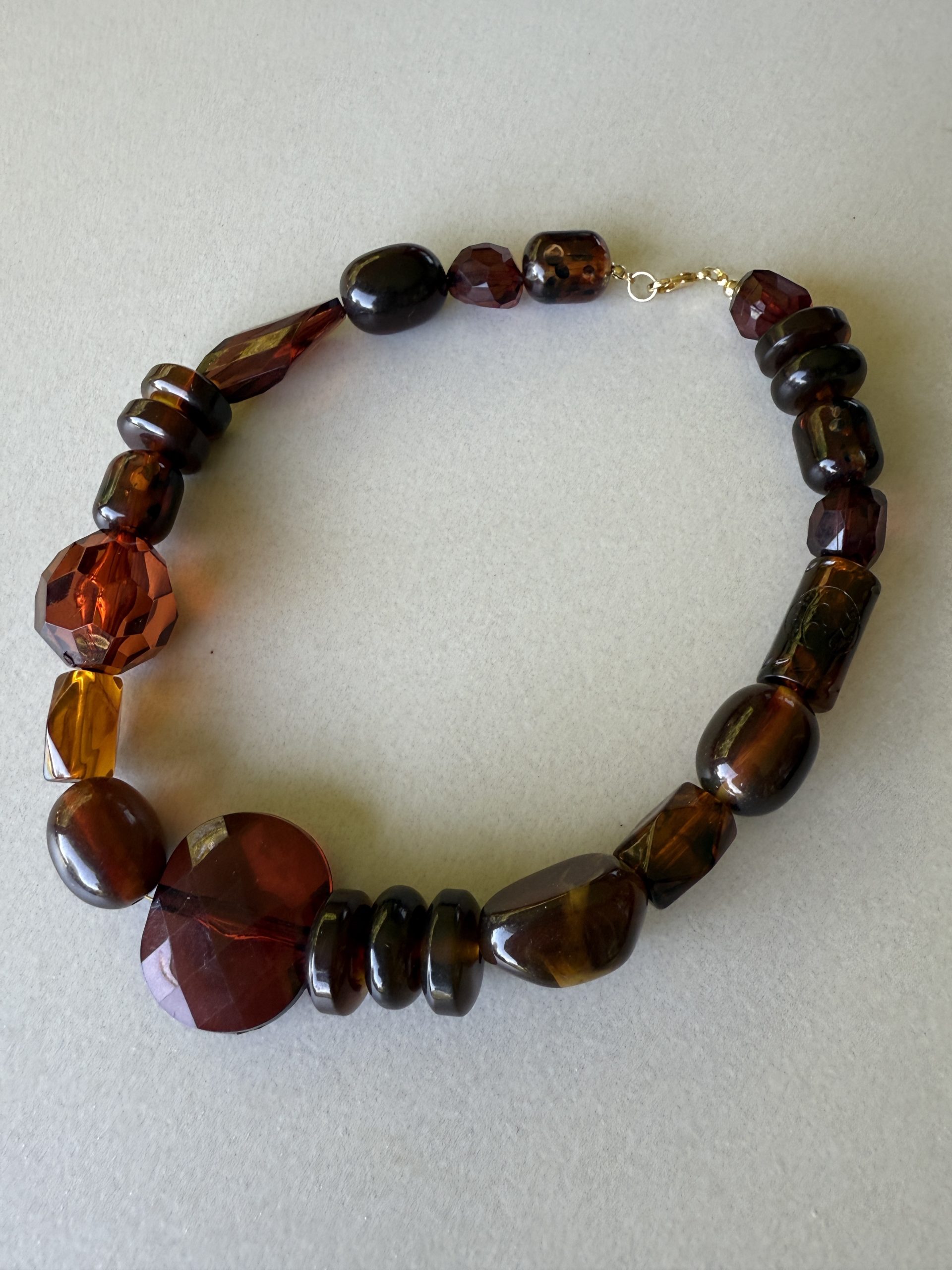 COLLAR CONFECCIONADO CON PIEZAS ACRILICAS, MEDIDA 47 CMS.TERMINACIONES CON BAÑO DE ORO.