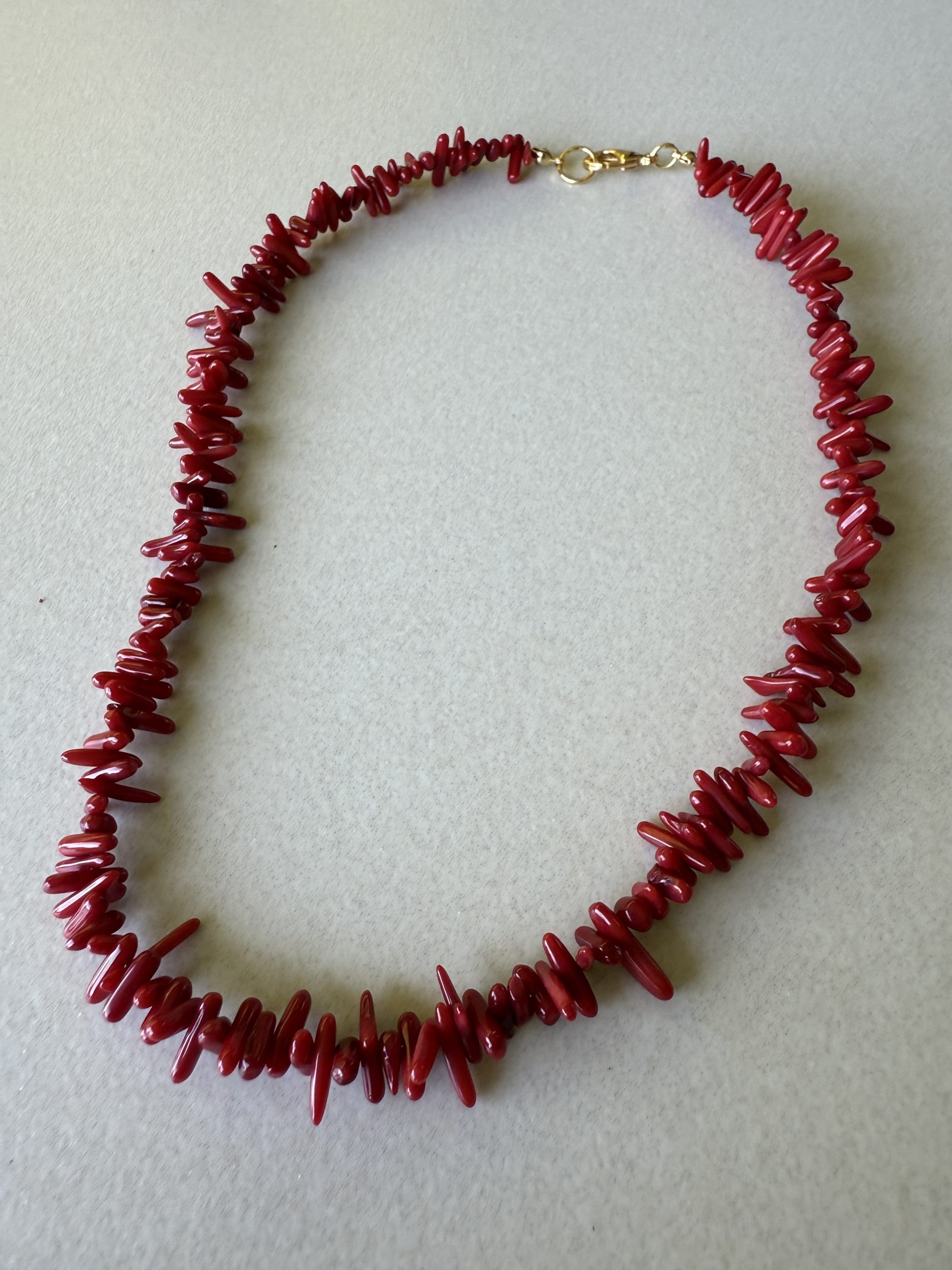 COLLAR PIEDRAS CORAL ROJO, MEDIDA 45 CMS. TERMINACIONES BAÑADAS EN ORO.