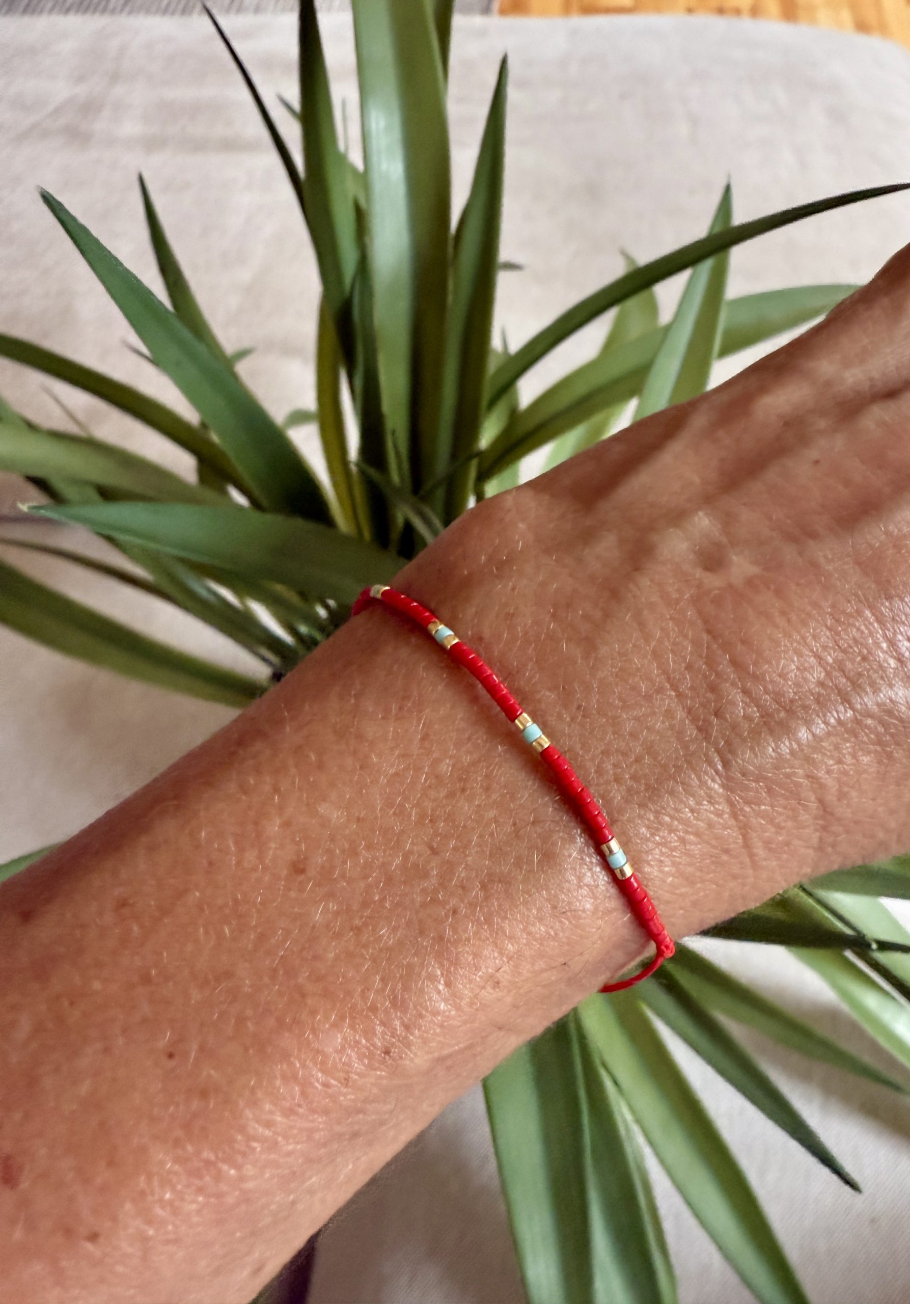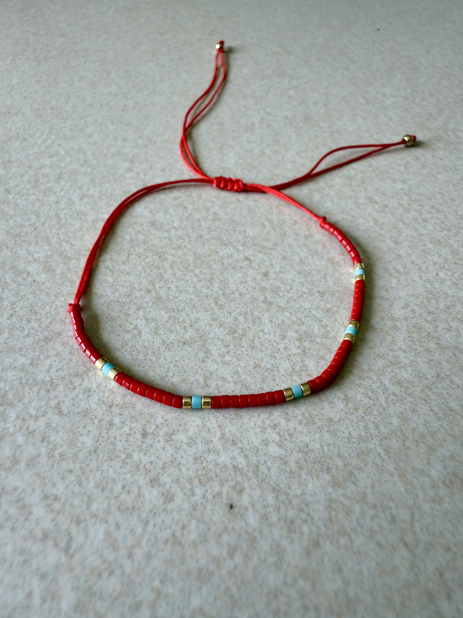 PULSERA TEJIDA A MANO,HILOS Y MIYUKI, AJUSTABLE.